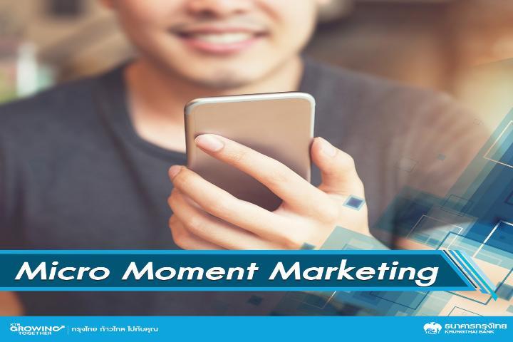 ในทางการตลาด Micro Moment หมายถึงพฤติกรรมระหว่างวันของผู้บริโภคที่กำลังอยู่ในช่วงของการ browse หรือค้นหาข้อมูลเพื่อการตัดสินใจซื้อ ซึ่งเป็นพฤติกรรมจากการใช้ Smart Phone ที่ผู้บริโภคจะมีติดตัวตลอดทุกที่ ทุกเวลา มีรายงานว่า ผู้บริโภค 82% ค้นหาข้อมูลที่ตัวเองต้องการผ่าน Smart Phone นักการตลาดที่สามารถเบียดเอาตัวเองเข้าไปอยู่ในช่วงเวลาดังกล่าว ในฐานะผู้ให้ความรู้ ไม่ใช่ผู้โฆษณาขายของ จะได้รับผลตอบรับในทางบวกและส่งผลต่อการตัดสินใจซื้อในที่สุด และในยุคที่เราทุกคน พก Smart Phone ติดตัวกันทุกคนแบบนี้แล้ว Micro Moment Marketing จึงเป็นกลยุทธ์การตลาดที่สำคัญที่สุดสำหรับปี 2018