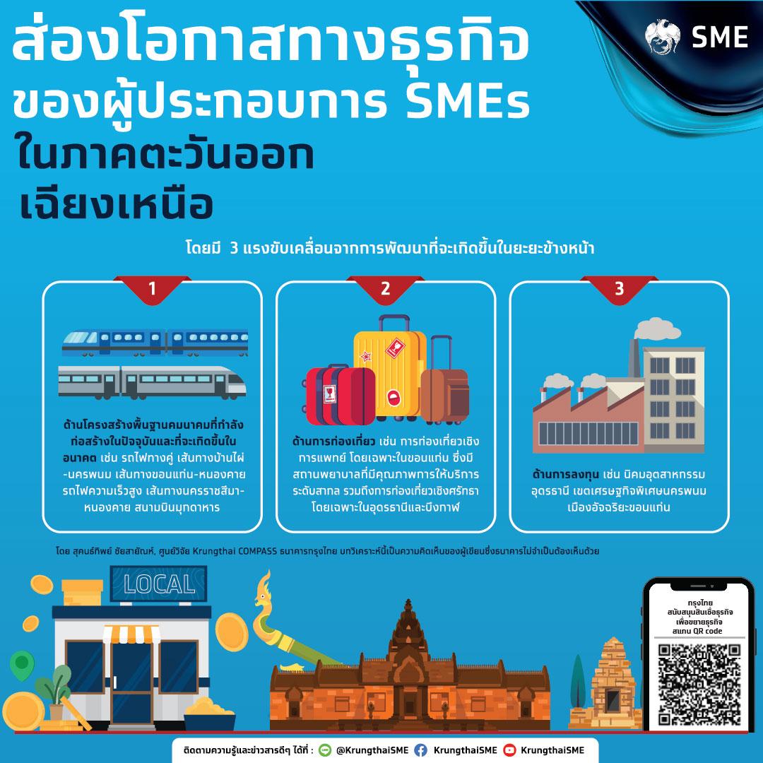 Krungthai COMPASS แนะนำผู้ประกอบการที่เกี่ยวข้องในภาคตะวันออกเฉียงเหนือ โดยเฉพาะ SMEs ควรยกระดับประสิทธิภาพการให้บริการและเพิ่มทักษะของแรงงานให้สูงขึ้น รวมทั้งควรเตรียมความพร้อมในมิติด้านสิ่งแวดล้อมด้วย ยกตัวอย่างเช่น การลดฝุ่น PM 2.5 การศึกษาแนวทางโลจิสติกส์สีเขียว (Green Logistics) เช่น การใช้รถบรรทุกไฟฟ้า และการใช้พลังงานทดแทนจากโซลาร์ เป็นต้น ซึ่งการเตรียมความพร้อมเหล่านี้จะทำให้เกิดการพัฒนาที่เป็นมิตรกับสิ่งแวดล้อมและยั่งยืน ขณะที่ภาครัฐควรสนับสนุนโครงการส่งเสริมองค์ความรู้ของผู้ประกอบการ SMEs อย่างเป็นรูปธรรมและต่อเนื่อง โดยเฉพาะด้านเทคโนโลยีดิจิทัล และเทคโนโลยีเพื่อสิ่งแวดล้อม (Green Technology) รวมทั้งออกมาตรการส่งเสริมการลงทุนและการเข้าถึงแหล่งเงินทุนที่เหมาะสม สำหรับ SMEs นอกจากนี้ ภาครัฐควรเร่งขับเคลื่อนแผนการพัฒนาโครงข่ายคมนาคมขนส่งในภาคตะวันออกเฉียงเหนือที่เชื่อมโยงกับรถไฟความเร็วสูงจีน-ลาว และการลงทุนในระเบียงเศรษฐกิจพิเศษภาคตะวันออกเฉียงเหนือ (Northeastern Economic Corridor: NeEC) ซึ่งจะเป็นตัวแปรสำคัญที่ช่วยสนับสนุนการค้าการลงทุนในพื้นที่ภาคตะวันออกเฉียงเหนือมากขึ้น