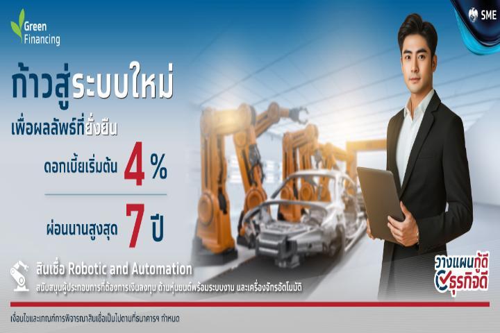 สนับสนุนสินเชื่อสำหรับผู้ประกอบการ SMEs ที่ต้องการเงินลงทุนเพื่อ สร้าง/ซ่อมแซม/ปรับปรุง หุ่นยนต์ พร้อมระบบงาน และ อุปกรณ์ที่เกี่ยวข้อง รวมทั้งระบบอัตโนมัติ